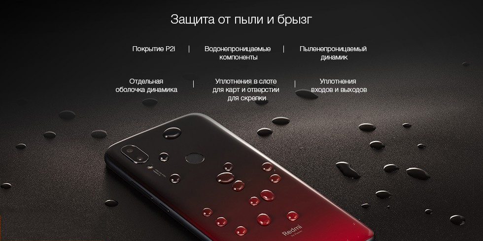 Корпус Redmi 7 целиком покрыт тончайшей гидрофобной мембраной, дающей дополнительную защиту устройству. Подобно листу лотоса, она собирает попавшую на корпус влагу в капли, быстро и без следа скатывающиеся вниз. С такой защитой смартфон еще дольше прослужит Вам, он не боится воды, масла, газированных напитков, вина, молока, пота, соли и иных жидкостей.